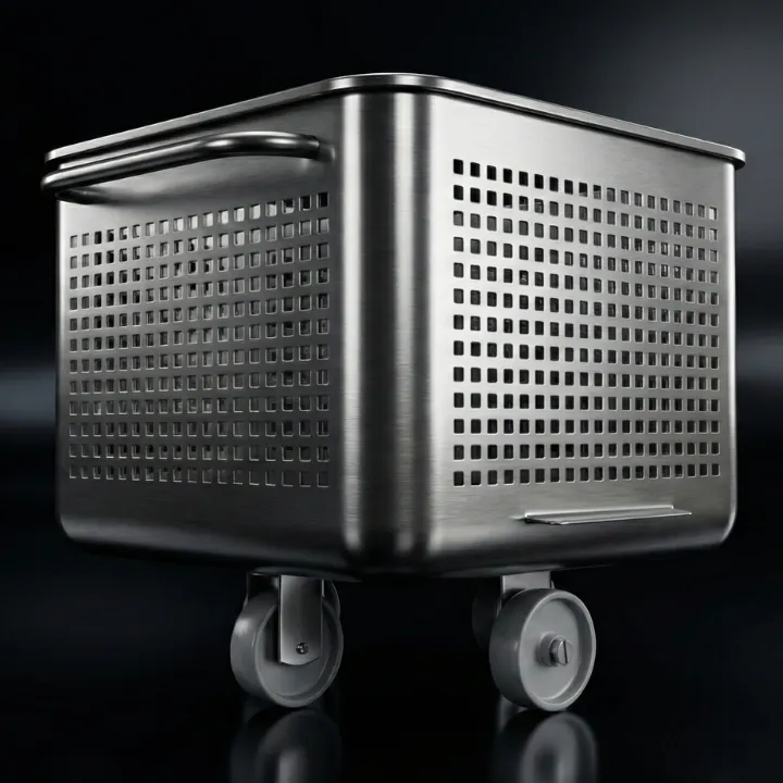 Perforated Euro tub 200 L – durability and efficient liquid drainage! Made of stainless steel 1.4301 or 1.4401, electro-polished, with perforated walls for enhanced functionality in the food industry.