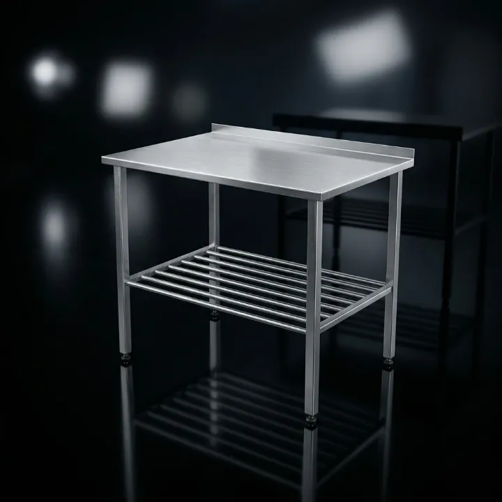 Stół roboczy ze stali nierdzewnej – trwała konstrukcja i dwie wersje półki do wyboru. Niezawodne wsparcie dla każdej profesjonalnej kuchni i przetwórni!